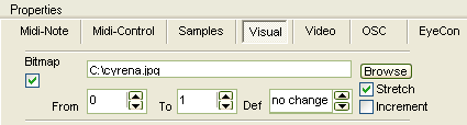 EyeCon can trigger WIndows Bitmap (.BMP) and JPEG Files (.jpg). To setup the appropriate mapping, select the 'Visual' tab in the element editor.