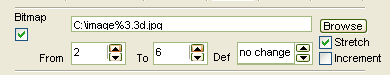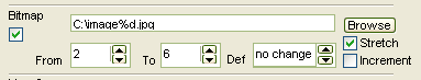 You might have the idea to map different positions along your touchline with different images. You can use indexed filenames to achieve that. Lets assume your image files are called image2.jpg, image3.jpg through image6.jpg. Now you need to set up a placeholder in the filename field which represents the varying indices along your touchlines. In our example you would use '%d' as a placeholder. You also have to select the start and end index in the 'From' and 'To' boxes. Eyecon will calculate the displayed image index according to the triggered position along your touchline. Remember that you can use all the possible EyeCon element types (fields, trackers) in the same way.